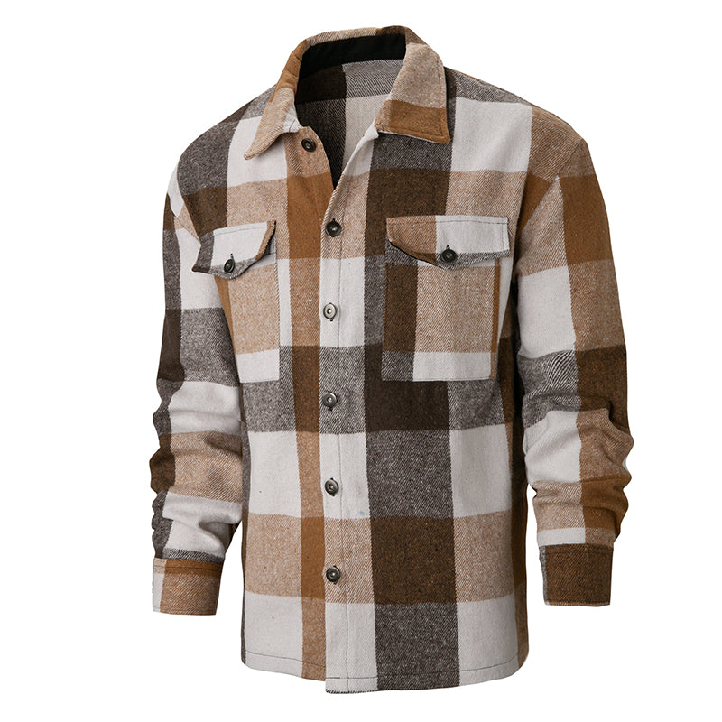 Dit overhemd met lange mouwen heeft een normale pasvorm en een relaxed silhouet. Het heeft een ronde halslijn onder een gestructureerde kraag, waardoor een gelaagde uitstraling ontstaat. Het ontwerp omvat twee borstzakken op het bovenste voorpaneel. De mouwen zijn lang en het overhemd behoudt strakke lijnen met minimale versieringen.